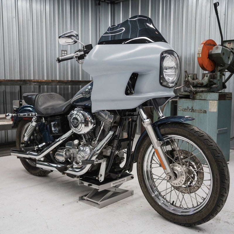 2005以前 ダイナ用 FXRPスタイルのフェアリングキットです。 <特長> ●往年の名車FXRP(スーパーグライドポリス)のフェアリングを忠実に再現したフレームマウントフェアリングキット。快適なスポーツクルージングを楽しめます ●フェアリングは頑丈なグラスファイバー製 ●未塗装品。好みのカラーにペイントしてください ●マウントブラケットは車種専用設計。パウダーコート塗装仕上げ ●7インチヘッドライト用マウント付 ●クリアのヘッドライトカバー付 ●ダークスモークカラーの9インチ・フレアウィンドシールド付属。防風効果も更に高まります ●取付けに必要なハードウェア類が付属します ●ペイントに合わせてスクリーンのカラーを変えたい方は、別売の専用カラーフレアウィンドシールド(SEL-KWW-02-0618)を装着出来ます ※7インチヘッドライトが別途必要です ※フロントウィンカーは移設する必要があります ※フェアリングと装着のハンドルが干渉しないか等、ペイント前に仮組状態で確認してください ※8.5インチトール以上のプルバックライザーがお勧めです。Tハンドルバー、ナローエイプハンドルも干渉を回避できる場合があります。 ※FXDWG ワイドグライド不可