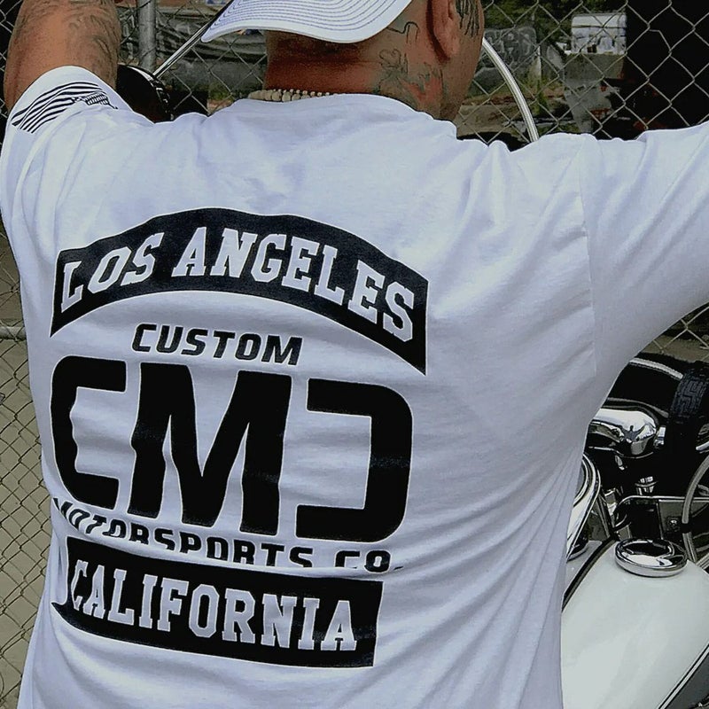 CMC(CUSTOM MOTORSPORTS CO)のロゴ入り半袖Tシャツです。 背中にはCMCロゴが大書きされ、遠目にも目立ちます。 左袖にブラックアウト星条旗入り。 左胸にもCMC(CUSTOM MOTORSPORTS CO)のロゴ入り。 ※サイズ表記は米国サイズにつき、日本サイズよりワンサイズ程度大きめです。