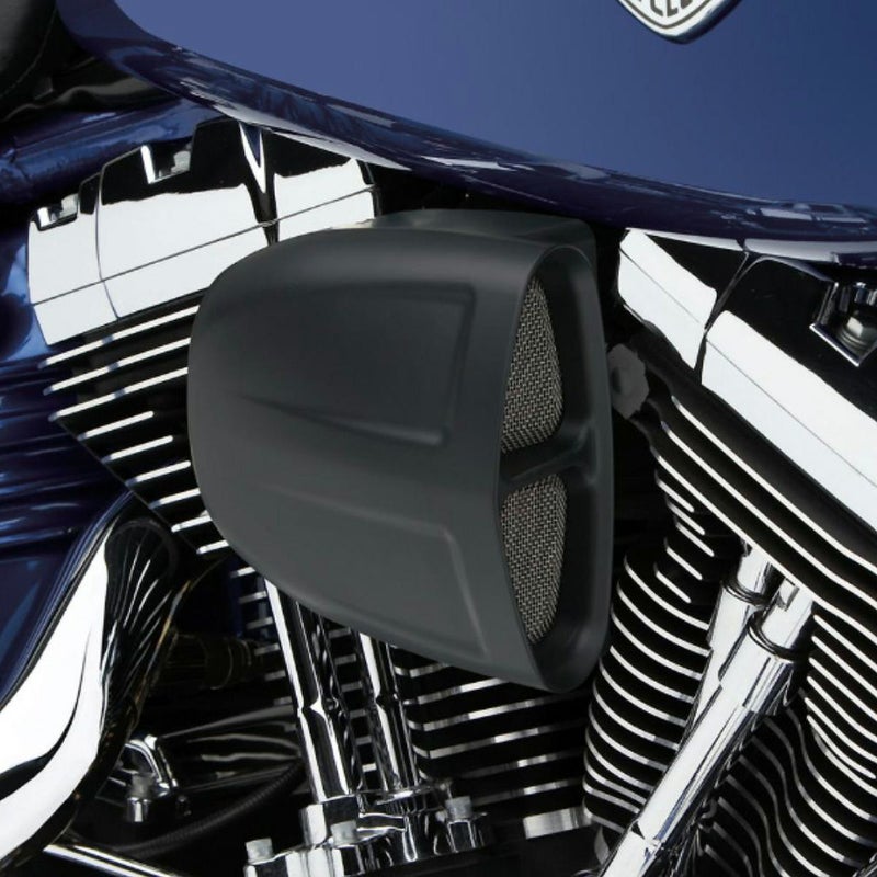 M8ソフテイル ハイフローエアクリーナーです。 カバーはアルミニウム製。 アメリカンホットロッドのエアインテークを彷彿とさせる金網付きの吸気口が高性能エアクリーナーのイメージです。 エアフィルターはK&N製ハイフローエアフィルター。 オイル塗布済みですので、そのまま使用出来ます。 汚れたら洗浄して繰り返し使えます。 エアフィルター上面のベンチュリ形状のカバーが吸気流速を上げ、高密度のエアをインテークマニホールドへ送り込みエンジンパワーをアップさせます。 ※107ciエンジン車用。ノーマルのサポートブラケットを流用します。