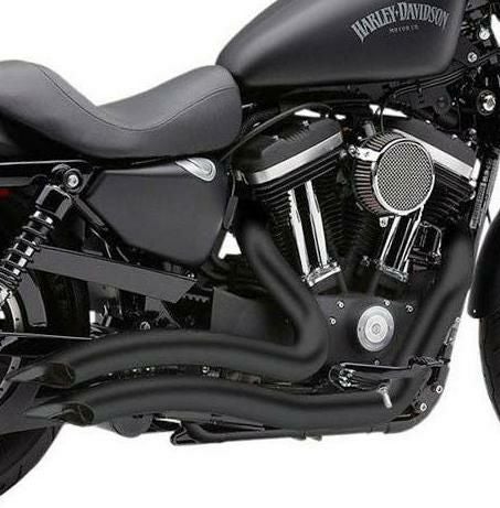 スポーツスター用のスピードスター スウィープエキゾースト コブラ製のフルエキゾーストマフラーです。 エキゾースト出口に向けてカーブした独特なシェイプ フルカバーヒートシールド外径2インチです。 ※写真2枚目はクローム(6233)です。 ※タンデムステップとの併用は出来ません。
