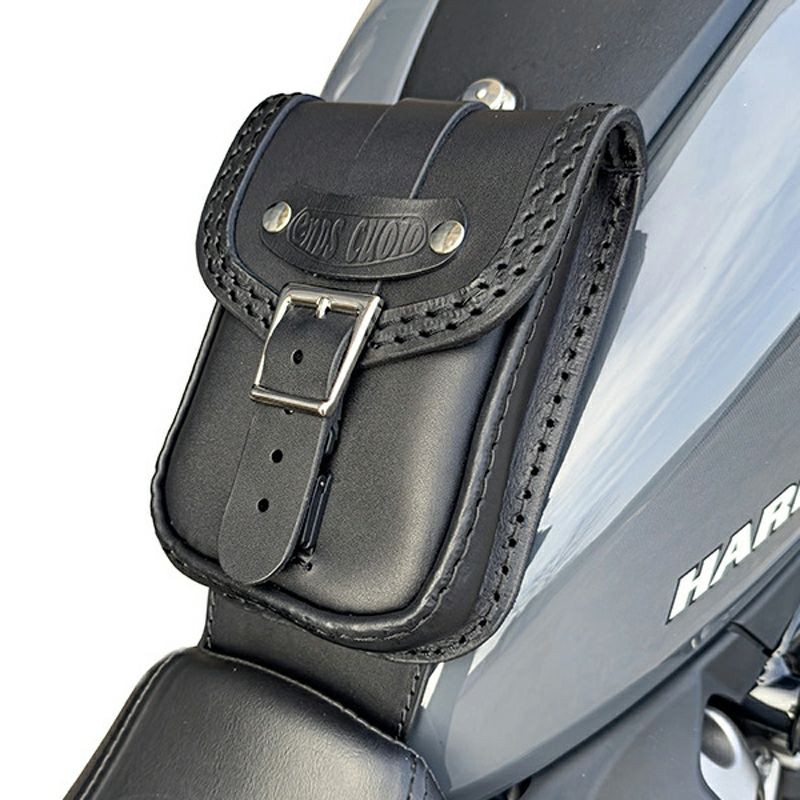 ナイトスター RH975用 レザータンクバッグです。 本革製の風合いが、伝統的なスポーツスターデザインを承継するナイトスターの雰囲気にベストマッチします。 素材は厚さ4mmの丈夫なレザー。熟練の職人によるベジタブルタンニンレザーは、使い込むほどに風合いを増していきます。 ブラックのレザーとブラックのステッチカラーの、飽きの来ないデザイン。 クラシカルなレザーストラップの裏側には、マグネット式のクイックバックル付き。蓋をワンタッチで開閉できます。 付属のマウントベースをタンクに装着すれば、あとはクイックバックルとベルクロでタンクバッグを簡単に着脱出来ます。 また取り外したバッグは付属のベルトストラップに付けてポーチとして携帯できます。