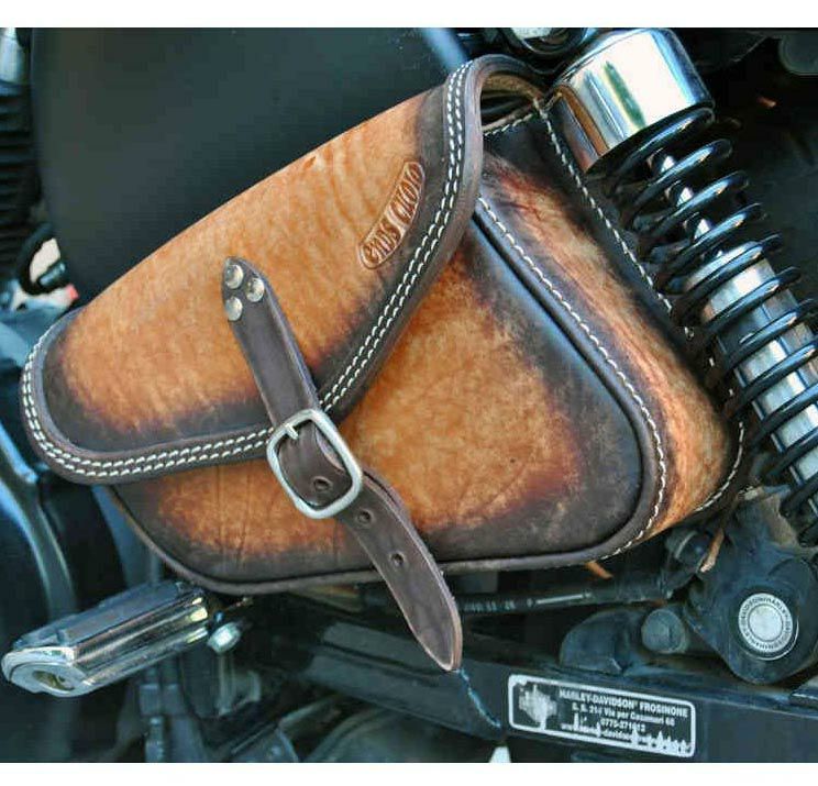 スポーツスター用スイングアームバッグ MAMBO ディストレスト・ツートン 左側 エンズクオイオ