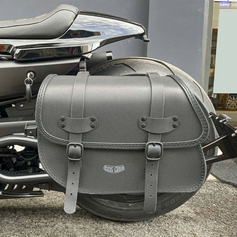 スポーツスターS用 大型レザーサドルバッグです。 ローアンドロングのスポーツスターSにマッチする、アメリカンスタイルのサドルバッグ。荷物の積載力も確保できます。 革は雄牛の丈夫なレザーを使用、きめ細かい格子柄の型押し模様を付けたモダンなルックスです。 熟練の職人によるベジタブルタンニンなめしの革は使い込むほどに味わい深くなります。 クラシックスタイルのバックルストラップ付。 上蓋上部にマグネット式のクイックバックルを装備し、バイクにまたがったままでもプルタブを引っ張るだけで素早く蓋を開閉できます。 ノーマルリアウィンカーは移設の必要ありません。 背面にはスチールプレートを内蔵していますので、荷物が重くなってもバッグをしっかりとホールドします。 取付けに必要なブラケットとハードウェアが付属します。 左用