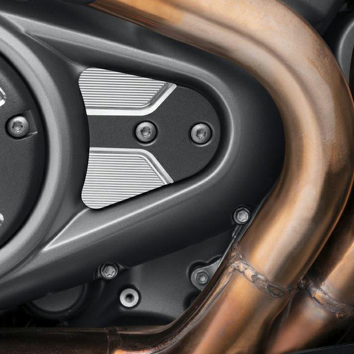ハーレー Revolution Maxエンジン用、タイマーメダリオンです。 鍛造アルミニウム製。 グラファイトカラーのベースに、精緻にカットされた部分のアルミシルバーのシャープなコントラストがアグレッシブでハイパフォーマンスなイメージを演出します。 同デザインのクラッチメダリオンと組み合わせれば、統一感のあるルックスになります。 取付け用のハードウエアが付属します。