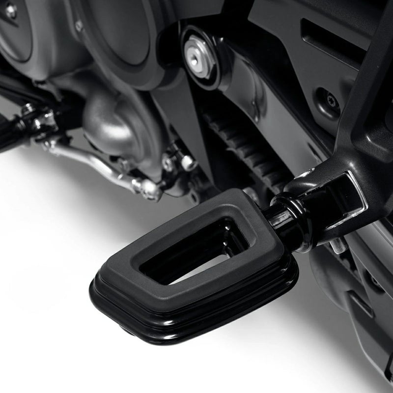 ハーレー スポーツスターS、ナイトスター RH975用 パッセンジャーフットペグセットです。 デザインはEmpire(エンパイア)デザイン。エッジ部分の深い溝が重厚なルックスです。 同デザインのカスタムパーツと組み合わせると、統一感の高いカスタムルックになります。 本体はアルミニウム製。精悍なブラックカラー。耐腐食性に優れたアノダイズ処理済みです。 上面には滑り止めのラバーインサート付きです。 ※スポーツスターSは別売パッセンジャーフットペグマウントキット(50502192A)、ナイトスター RH975は別売パッセンジャーフットペグマウントキット(50502434)が必要です。 左右セット