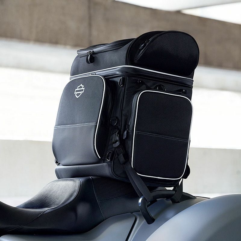 ライダーのためにライダーによって設計されたオニキスプレミアムラゲッジコレクションシリーズのツーリングバッグ。 ハーレーダビッドソンが提供する最高のラゲッジバッグであり、オートバイのラゲッジに必要なものすべてを提供します。 オニキスコレクションツーリングバッグは、長距離旅行に最適です。 このバッグは、靴を衣服から離しておくための独立したトップコンパートメント、2週間の旅行に十分なジーンズとTシャツを収納できるメインコンパートメント、トップコンパートメントが前に倒れないようにする取り外し可能なリッドストラップを備えています。 大きなフロントポケットには、鍵、ペン、書類、小さな電子機器を収納できます。 バッグの上部にある2つの外側のポケットはアイウェアの収納に最適で、2つの大きな下部外側のポケットは雨具の収納に最適です。 パイピング部分は反射素材で作られており、夜間の視認性にも優れています。
