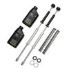 M8ソフテイル用 フロントサスペンションキットです。 左右カートリッジ式ダンパーおよびフォークスプリング、フォークオイルのセットです。 ダンパーは左側が圧側、右側が伸側を各々担当します。 プリロードおよび減衰力調整はフォークトップで行うことが出来、きめ細かいセッティングが可能です。 オーリンズの高精度なカートリッジは常にスムースな作動を実現します。 ハードなライディングでも安定したハンドリングとロードホールディングを実現します。 正立フォーク車用