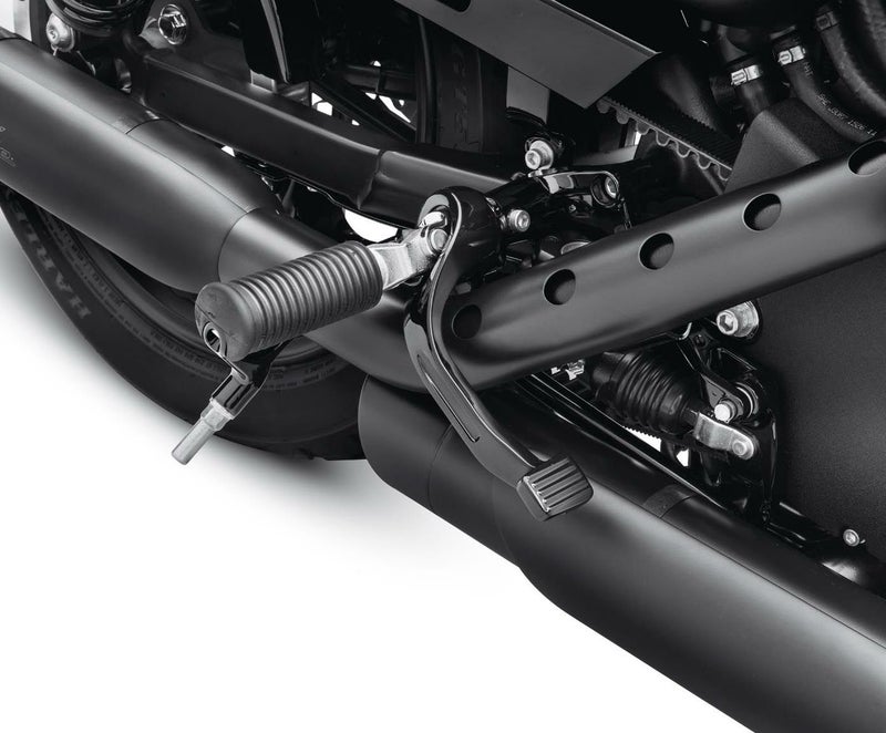 スポーツスターのフットコントロールを後方に移動します。 低いポジションのハンドルバーやクリップオンハンドルと組み合わせることで、カフェレーサースタイルの前傾ポジションとなり、前輪荷重を伴うスポーツライディングに適した乗車ポジションとなります。 ブレーキおよびシフトレバーを後方に移すために必要なパーツが付属します。 エキゾーストは標準装備のまま、取り付け可能です。 ライダーフットペグは標準装備のものをそのまま利用します。(キットには付属しません) ※取付けにはパッセンジャー用のフットペグおよびフットペグマウントを取り外す必要があります。(1名乗車仕様となります。) ※レールコレクションスプロケットカバー(34800032)は併用不可。
