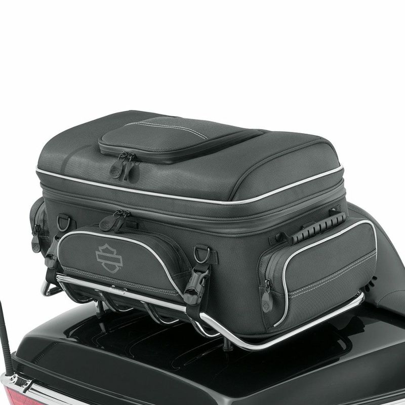 ライダーのためにライダーによって設計されたオニキスプレミアムラゲッジコレクションシリーズのツーリングバッグ。 ハーレーダビッドソンが提供する最高のラゲッジバッグであり、オートバイのラゲッジに必要なものすべてを提供します。 ツアーパックラックバッグは、ほとんどのツアーパックラゲッジラックの上に収まるように設計されており、長距離の旅行に必要な追加の収納スペースを提供します。 メインコンパートメントには3つのメッシュポケットがあり、整理しやすく、短い旅行でも衣類を収納するのに十分なスペースがあります。 バッグの外側の上部のジッパーポケットは、アイウェアを保護するためのフリースの裏地が付いています。 前面、背面、側面のポケットは、手袋を収納したり、キー、コード、携帯電話の充電器を整理したりするのに最適です。 デュアルサイドキャリーハンドル、ラバートップキャリーハンドル、取り外し可能なショルダーストラップにより、持ち運びが簡単になります。 剛性の高い構造により、空の場合でもバッグの形状が維持されます。 パイピング部分は反射素材で作られており、夜間の視認性にも優れています。 持ち運びに便利な取り外し可能なショルダーストラップと、レインカバーが付属します。