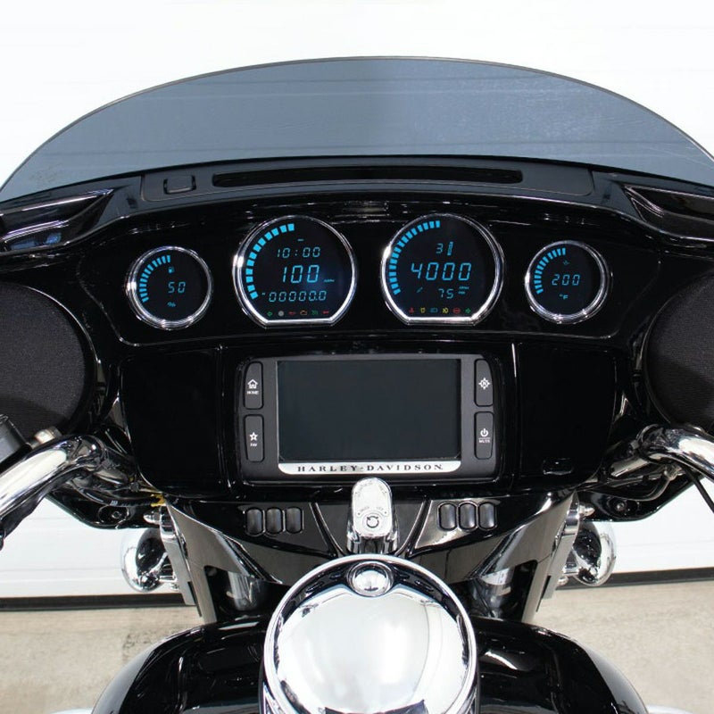 2014以降 ツーリング用 LCDメーター4個セットです。 <特長> ●メーター表示色はブルー ●ノーマルメーターと交換するだけ。プラグアンドプレイで接続可能 ●スピード、タコ、オドメーター、電圧計、エアサスペンションプレッシャーメーター、ギアポジションインジケーター、トリップ、エンジン温度、油温計、燃料計を表示できます ●ターンシグナル、坂道ホールド、セキュリティ、警告灯、トラクションコントロール、レインモード、油圧警告灯、測光センサー、フォグランプ、タイヤ空気圧、水温警告灯、クルーズコントロール、ABS警告灯、ハイビーム、エンジンチェックランプの各インジケーター装備 ※ディスプレイ表示をセットする際は、CVO以外はイグニッションスイッチオン、キルスイッチオフの状態でセットしてください。CVOモデルはキルスイッチオンの状態でセットしてください。
