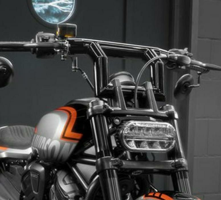 スポーツスターS、ナイトスター用 の大迫力2インチ径Tバーです。 <特長> ●2インチ径の Killer Bull スタイル極太T型ハンドルバー。大迫力のルックスです ●プルバックスタイルのライズ部分とハンドル絞り角で150mmのプルバック。アグレッシブなライディングスタイルです。 ●ハンドルクランプ、ハンドコントロール装着部はノーマルをそのまま使用可能です ●スチール製。グロスブラックのパウダーコート塗装仕上げ ●レボリューションマックスの電子制御スロットル対応 ●ノーマルのバーエンドミラーも装着可能 ●配線中通し用の穴が開いています ※ハンドル配線/クラッチケーブルは延長不要 ※ブレーキホースは延長が必要です(EXT45 等)