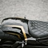 ナイトロッドスペシャルおよびVロッドマッスル用のショートリアフェンダーです。 幅240mm~260mmのリアタイヤに合わせたデザインです。 ヨーロッパのデザインらしい精緻な曲線と直線の組み合わせによって、クールなリアビューになります。 ※Vロッドマッスル(VRSCF)に装着の際は、テールライトとリアフェンダーブラケットをナイトロッドスペシャル用に交換する必要があります。 材質は軽量かつ頑丈なグラスファイバー製。ハンドメイドで製作されています。 グレー・ゲルコート処理済み。 未塗装品。 ※車両装着写真は塗装例です。(参考写真) キット内容: リアフェンダー 専用シート用シートパン 貼り付け用ブラックメッシュ 英文説明書 ※専用シートは別売です。(ST-7ROD) ※取り付けにはリアフェンダーブラケットの加工、ドリル加工およびメッシュ接着が必要です。