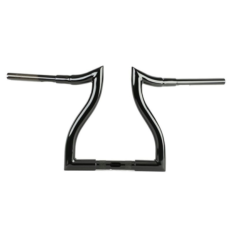 ロードグライドのハンドルバーを車両のモディファイなしにTバールックに変えたい方には最適なハンドルバーです。 ハンドル径は迫力の1.5インチ径。 トップ部分は鋭角に尖った形状。ボトム部分に向けてハンマーヘッドのようにカーブするシェイプが特徴です。 プルバックが大きく、握り心地も快適です。 ハンドコントロール部は1インチ径、クランプ部は1.25インチ径ですので、ノーマルのハンドコントロールおよびライザーに装着可能です。 2015年以降ロードグライド用のロングタイプ・ハンドコントロールクランプを装着可能です。 ※車両装着写真は14インチのものです。(参考写真)