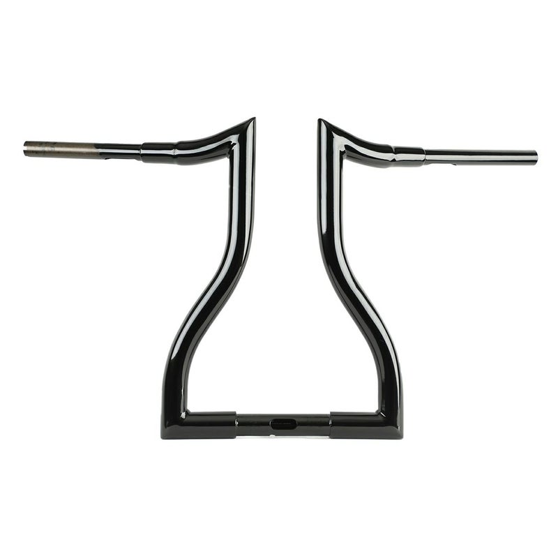 ロードグライドのハンドルバーを車両のモディファイなしにTバールックに変えたい方には最適なハンドルバーです。 ハンドル径は迫力の1.5インチ径。 トップ部分は鋭角に尖った形状。ボトム部分に向けてハンマーヘッドのようにカーブするシェイプが特徴です。 プルバックが大きく、握り心地も快適です。 ハンドコントロール部は1インチ径、クランプ部は1.25インチ径ですので、ノーマルのハンドコントロールおよびライザーに装着可能です。 2015年以降ロードグライド用のロングタイプ・ハンドコントロールクランプを装着可能です。 ※車両装着写真は14インチのものです。(参考写真)