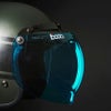 ミニサンバイザー付のバブルシールドです。 ミニバイザーが陽射しを遮り、眩しさを抑えてくれます。 また、バイザープラスバブル型シールドで顔とシールドの距離があるため、曇りずらく、解放感もあります。 両サイドスライド式の3点ホック止めで、殆どのジェットヘルメットに装着可能です。 バブルシールドは90度の角度でフリップアップ出来ます。 材質は丈夫なポリカーボネイト製。 傷防止のコーティングと曇り止め加工処理が施されています。 99%UVカット率です。