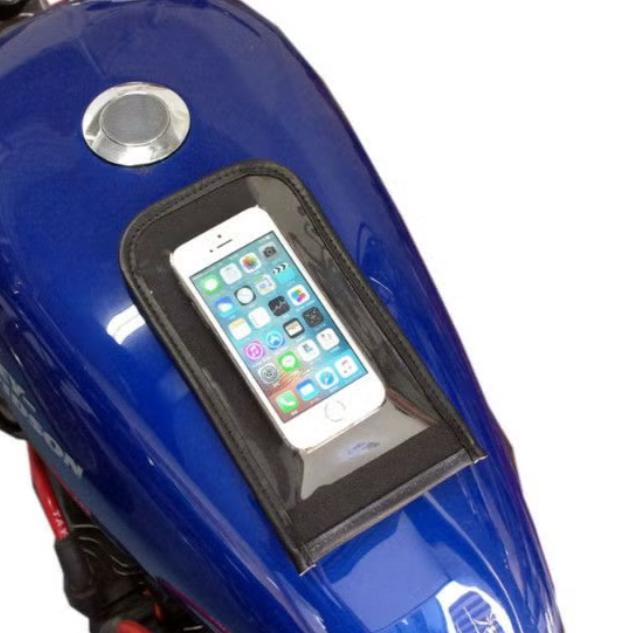 スマートフォン用ポーチ。 マグネット式なので、タンク等に簡単に着脱できます。 タッチスクリーン対応なので、入れたまま操作も可能です。 多少の雨でもOKです。 比較的小型のスマホ向きです。iPhoneSEやXPERIA Zシリーズ(約13.6cmX7cmX0.8cm)でイッパイな感じです。