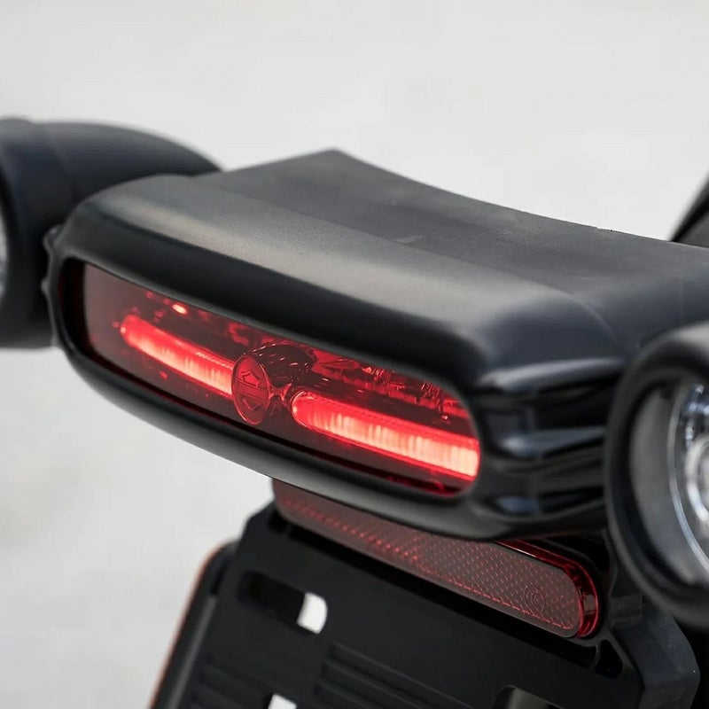 スポーツスターS用 テールライトカバーです。 両サイドのリブがデザインアクセントになっています。 ノーマルテールライトの上から取り付けるだけです。 テール周りが無機質で戦闘的なイメージに変わります。