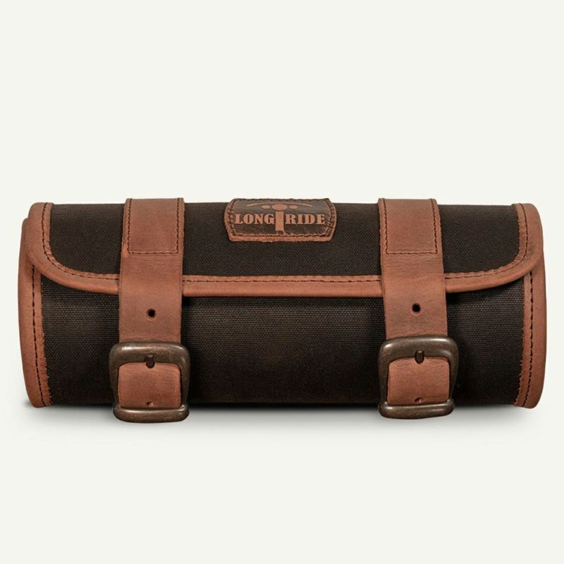 ワックスコットンキャンバスのツールロールです。 <特長> ●丈夫なワックスコットンキャンバスと、レザーストラップの組み合わせ。 ●工具類を放り込んで収納できるコンパクトサイズで使い勝手の良いツールロールバッグ ●付属のレザーストラップ2本でフロントフォークやフレーム等に固定します ●容量2L