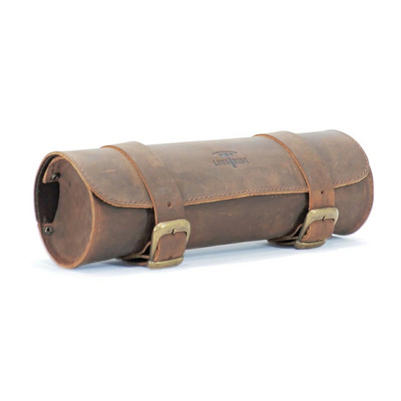 本革製のツールロールバッグです。 <特長> ●ベジタブルタンニンなめしの頑丈な本革製。使い込むほどに味わい深い風合いとなります ●2本のストラップでフロントフォーク、フレーム等に装着。ワイルドなルックス ●容量約2.8L