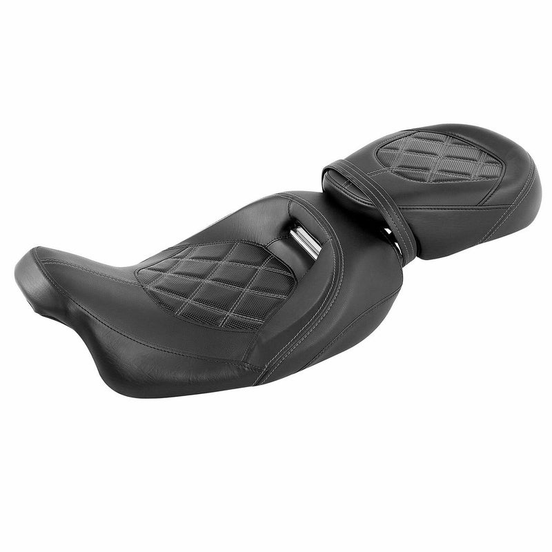 薄めのダブルダイアモンドステッチが入ったソロ、パッセンジャーシートセット。 座面を広く薄く作られ、車両のスタイルを崩さない非常にスタイリッシュなシートセットです。 用途に応じてパッセンジャーシートの取り外しが簡単に出来ます。 シートナット、ベルト付属。