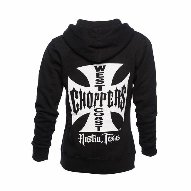 West Coast Choppersのフルジップ・フード付きパーカ。 左胸、背面にWest Coast Choppersのマルタクロス入り。 ※EUサイズですので、日本サイズよりワンサイズ程度大き目です。