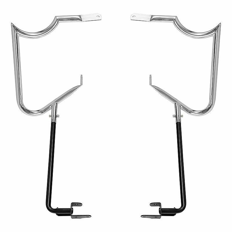 ポインテッドスタイルのサドルバッグガード。 両サイドが尖った攻撃的なデザインです。 車両の印象が大きく変わります。 サドルバッグの保護になるだけでなく、万が一の立ちゴケ等の時にも安心できるパーツです。 標準でサドルバッグガードが付いていない車両でも、サドルバッグサポートが付属しているので、別途購入の必要はありません。 ※突起物と判断され、車検には通らない可能性があります。