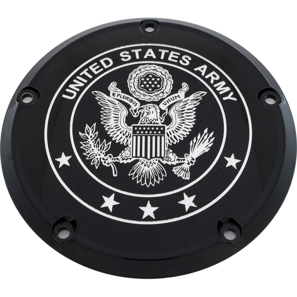 【SALE】CUSTOM ENGRAVING ARMY ダービーカバー (ブラック) 【ダイナ、ツーリング、ソフテイル】