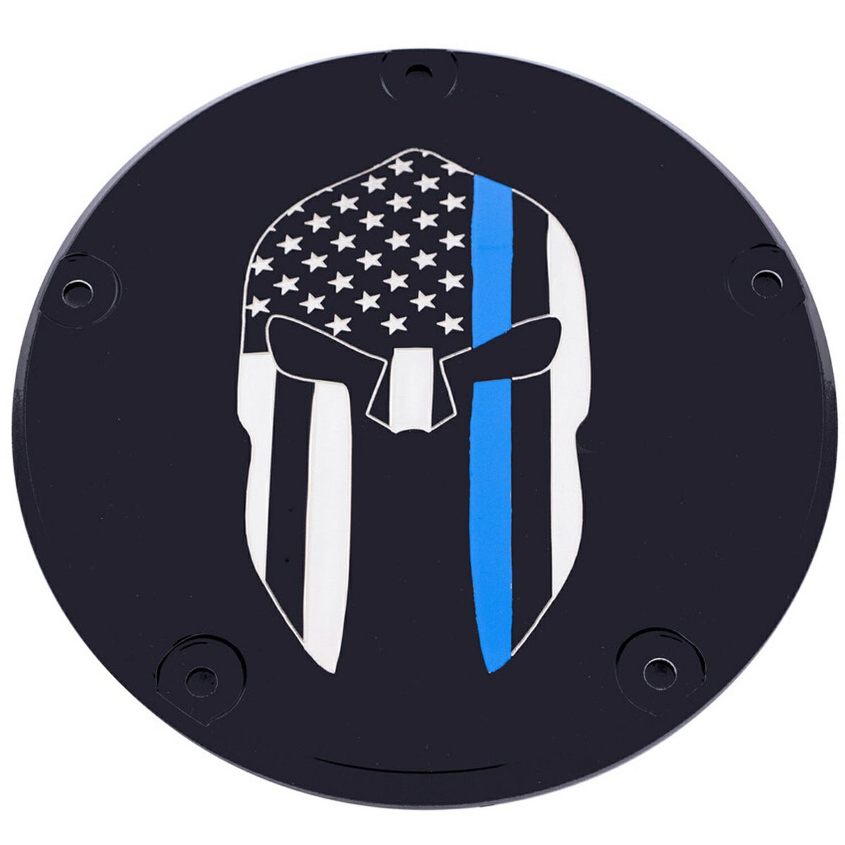 【SALE】CUSTOM ENGRAVING SPARTAブルーライン ダービーカバー (ブラック) 【ダイナ、ツーリング、ソフテイル】