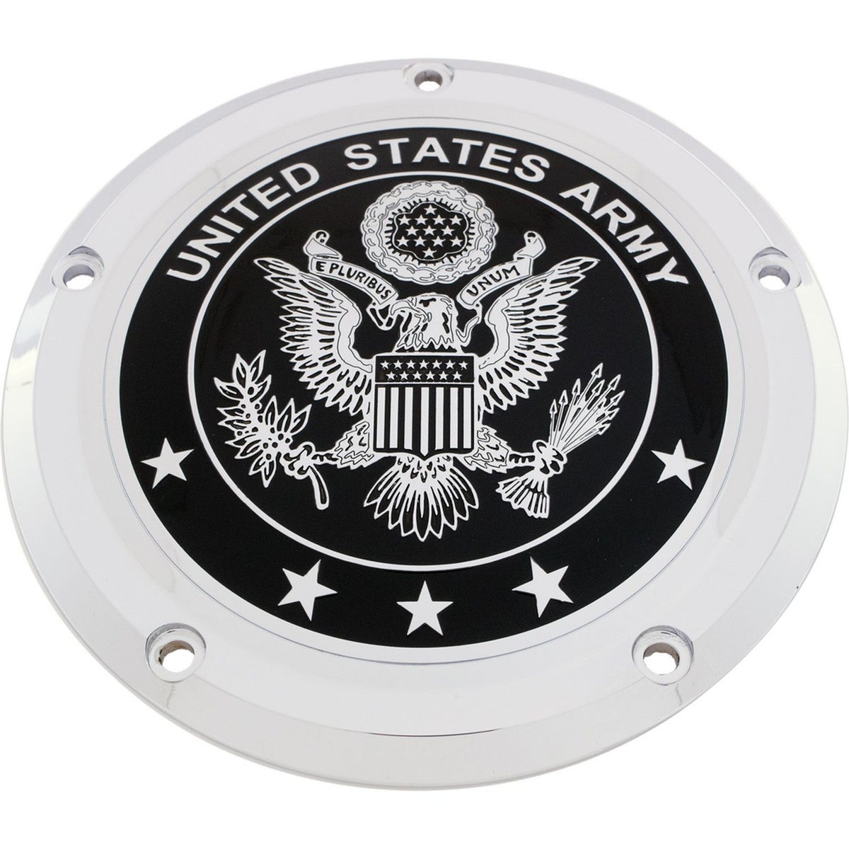 【SALE】CUSTOM ENGRAVING ARMY ダービーカバー (クローム) 【ダイナ、ツーリング、ソフテイル】