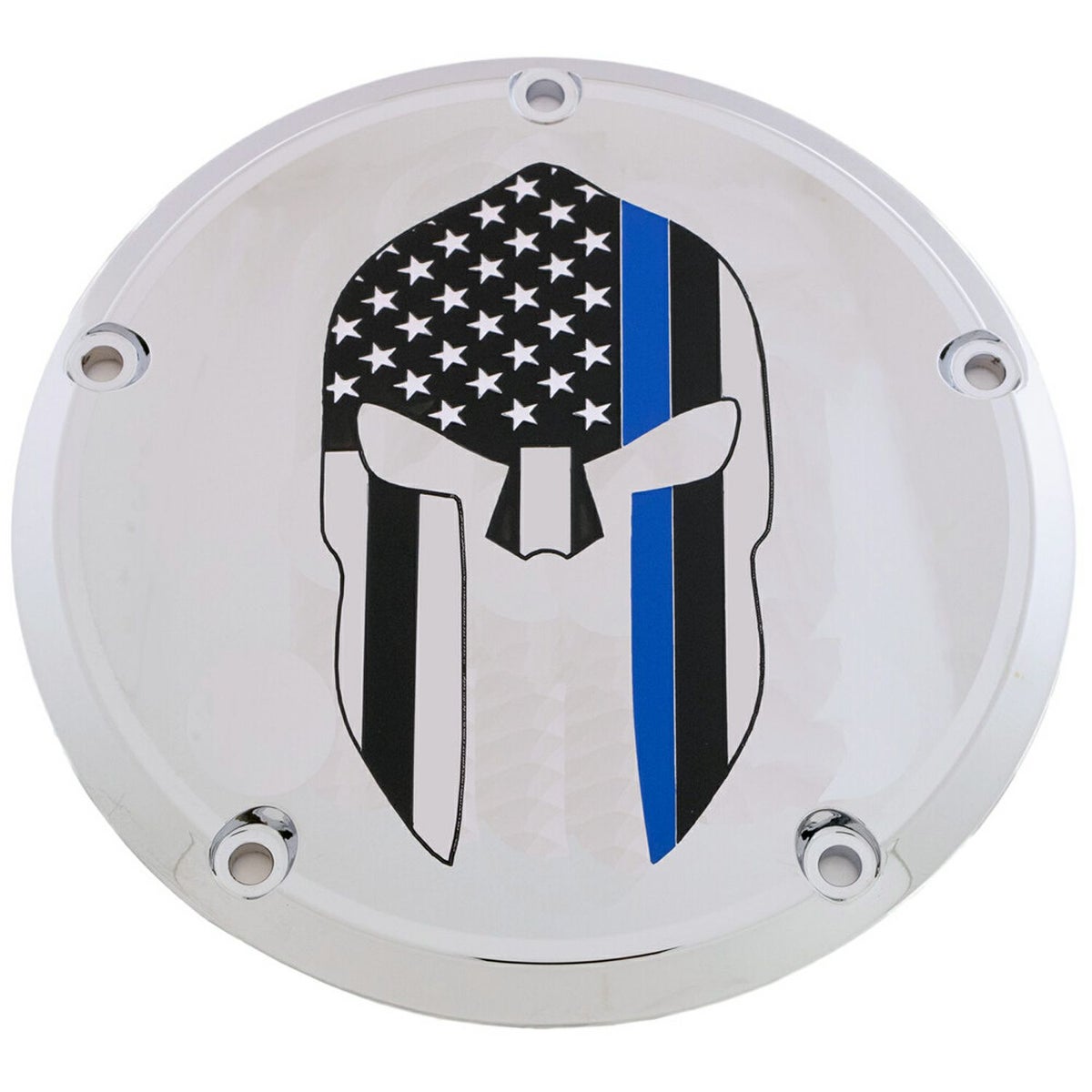 【SALE】CUSTOM ENGRAVING SPARTAブルーライン ダービーカバー (クローム) 【2016以降 ツーリング、トライク】