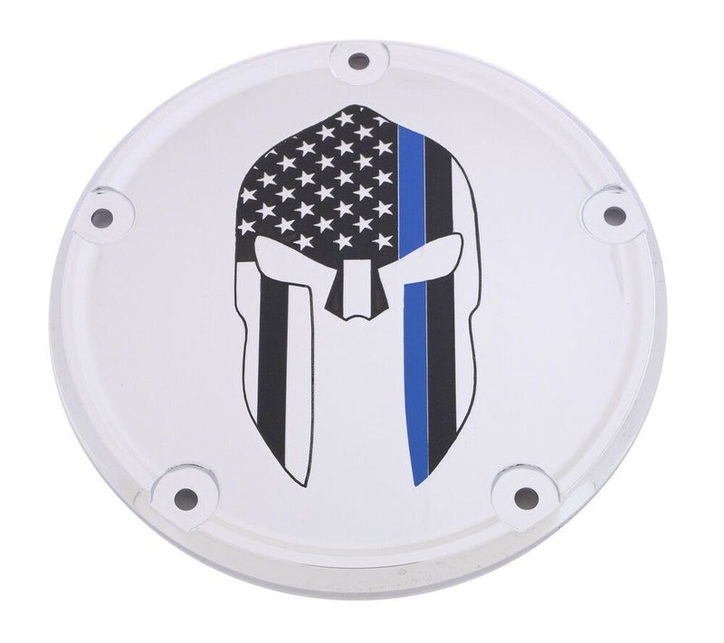 M8ソフテイル用 ビレットアルミニウム製の高品質ダービーカバーです。 <特長> ●高品質6061ビレットアルミニウム製。CNCマシンによる高精度削り出し加工品です ●クロームの地にブルーラインで彩った古代スパルタ兵の兜グラフィック入り ●ペイントは高品質なPPG製自動車用塗料を使用。グラフィック部分の塗装は一品ずつ手作業で行われています