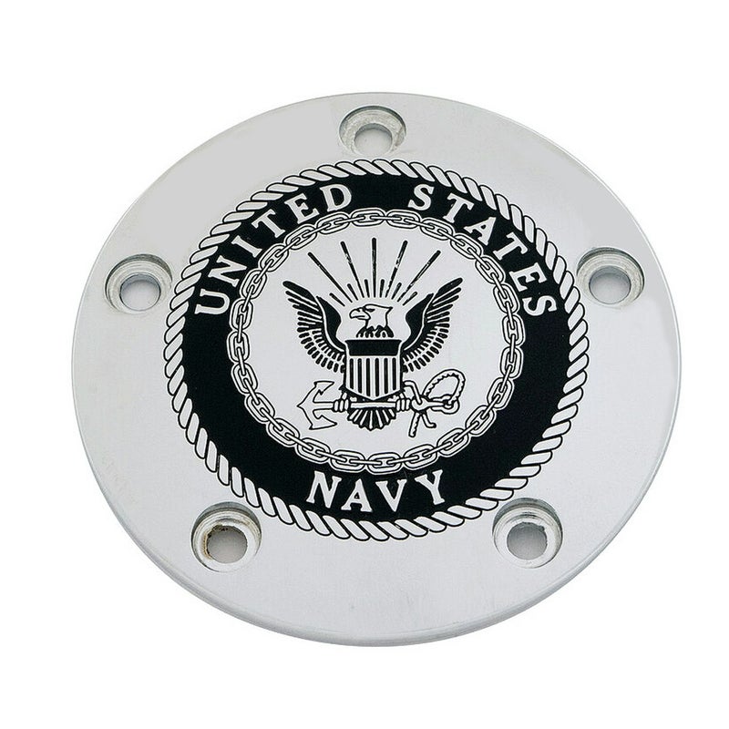 ツインカム ツーリング、ダイナ、ソフテイル、トライク用 ビレットアルミニウム製高品質ダービーカバーです。 <特長> ●高品質6061ビレットアルミニウム製。CNCマシンによる高精度削り出し加工品です ●クロームの地にUS NAVY(ネイビー)のロゴマーク入り ●ペイントは高品質なPPG製自動車用塗料を使用。グラフィック部分の塗装は一品ずつ手作業で行われています ●ハーレー本社のあるアメリカウィスコンシンで純正部品スペック同等以上の製造品質で生産されています