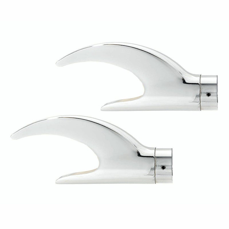 サムソン フィッシュテールマフラー用のリーパー エンドチップ。 リーパー(死神の鎌)を連想させるデザインのマフラーエンドチップです。 左右2本出しマフラーのチョロスタイルにもってこいのデザインです。 2.25インチ径のSAMSON(サムソン)製のエキパイに装着可能です。 2個セット 左右共用