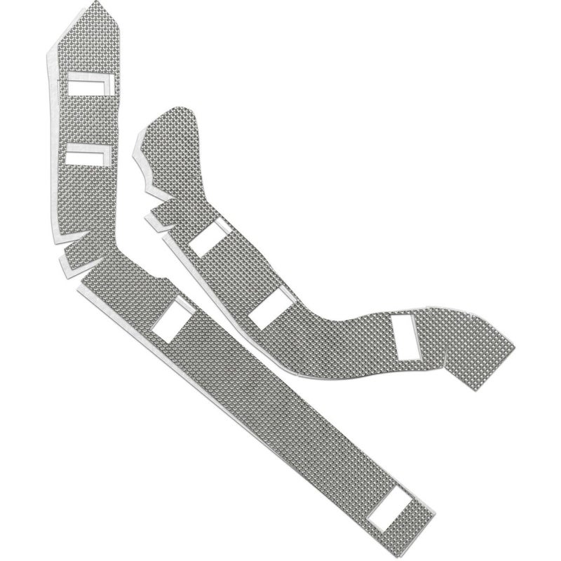 ハーレー ソフテイル Vance & Hines(バンスアンドハインズ)のソフテイルデュアル・フルエキゾースト用 ヒートシールドライナーです。 ヒートシールドの内側に取付けるシートで、取付部分の形状に合わせてCNCマシンでカッティングされていますので、シールドのカラーにかかわらず使用出来ます。 素材はディンプル加工されたアルミニウムシートと、摂氏1000度に耐える耐熱耐火素材の2層構造です。 エキゾーストからの熱を60%カットしますので、特に信号待ちなどで足を降ろした際に、効果を実感できます。 ※写真は現物と形状が異なる場合があります。(参考写真)