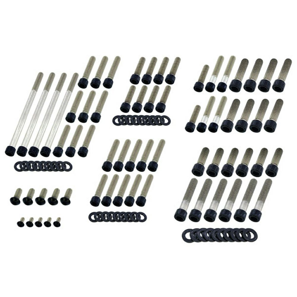 2019以降 M8ソフテイル用 エンジンボルトセットです。 <特長> ●高強度ステンレススチール製。コストパフォーマンスに優れたエンジンボルトセット ●ヘッド部分はグロスブラックのパウダーコート塗装仕上げ。装着時のドレスアップ効果も抜群です。ドイツの工場で塗装工程を行っており、腐食や傷に強い仕上がりです ●高強度ステンレスA2-70製。最小引張強度700N/mm2 ●プライマリーカバー、カムカバー、ダービーカバー、タイマーカバー、ロッカーカバー、リフターカバー、トランスミッションサイドカバー用ボルトのセット ※ブレイクアウト、ファットボーイ、FXDR114はプライマリーカバーボルトのサイズ違いのため不可 ※写真はイメージです 【各トルク値】 プライマリーカバー:【16.3-17.6 N.m】 カムカバー:【10.2-13.6 N.m】 ダービーカバー:【2.8-3.9 N.m】 タイマーカバー:【2.8-4 N.m】 ロッカーカバー:【13.6-15.8 N.m】 リフターカバー:【14.9-17.6 N.m】 トランスミッションカバー:【14.9-17.6 N.m】