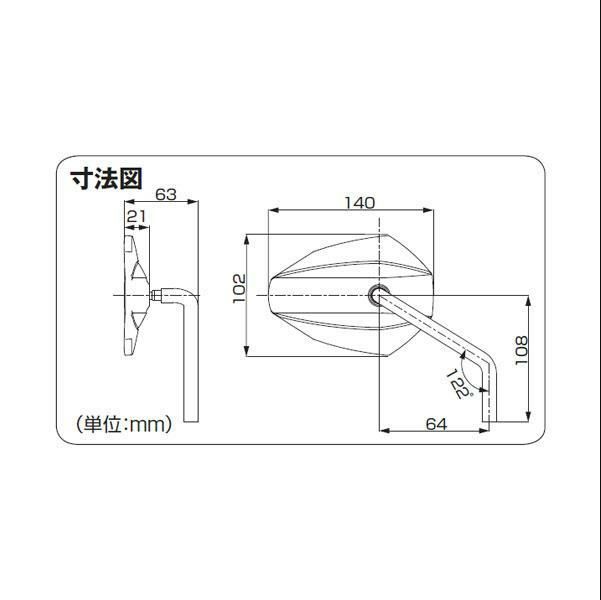 インチ/ミリ共に対応可能なハンドルマウントミラー 右用