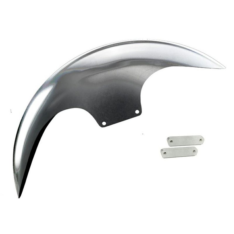 ハーレー ツーリング、トライク用 カスタムフロントフェンダーキットです。 フェンダーはミドルレングスでやや深さのある、CAFEデザイン。 前後のカットがシャープな、適度にスポーティーなルックスです。 16インチ~19インチのノーマルサイズホイール/タイヤにフィットします。 14ゲージ(約1.6mm)厚のスチール製。プレスと精緻なレーザー加工で製作されています。 アルミ製サテン仕上げのアダプターが付属します。 その他取り付けに必要なハードウェアが付属します。