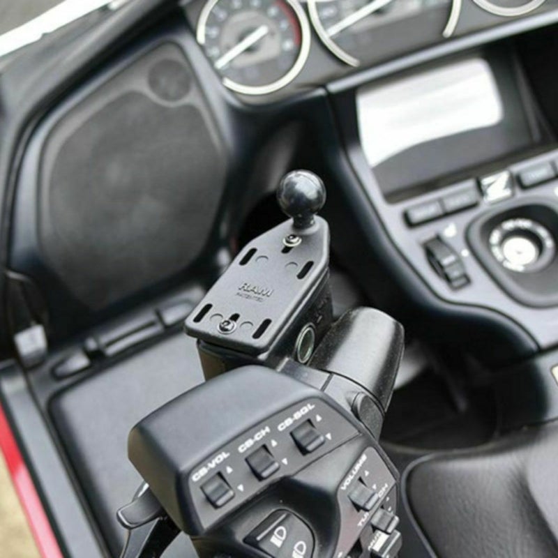 ハーレーやその他バイクのリザーバータンクキャップの上から被せるようにして取り付けるベースパーツ。 ハンドル周りのスペースが少ない場合にオススメです。 リザーバータンクキャップの上から取り付けます(交換式ではありません)。 色[カラー]:ブラック サイズ:1インチボール 重量[グラム]:115g 材質[素材]:高強度アルミニウム(Marine-grade aluminum) 付属品: M4 x 20mm 小ねじ、M4 x 30mm 小ねじ、M4 x 35mm 小ねじ、M4 平ワッシャー、.188inch Nylon スペーサー 特記事項: この商品はBサイズ(1インチボール)規格となります。他のボールサイズとの互換性はありません。 使用上の注意: ※取付け時は使用環境、取付け箇所の必要に応じて適宜市販の緩み止め接着剤などを使用して確実に固定してください。 ※必ず使用用途に合った耐荷重のボールサイズをお選びください。また万が一の脱落防止のため、装着機器には脱落防止用ストラップなどを使用してください。 ※製造工程上、製品表面の塗膜に一部色ムラや剥がれ、バリが見受けれらる場合がございます。製品の使用・機能的に問題がない場合は補償対象外となります。 【メーカー】 ラムマウント(RAM MOUNTS)