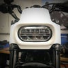 スポーツスターS用 ヘッドライトフェアリングです。 ノーマルヘッドライトに合わせたオーバル形のカットアウト。ワイドなフロントフォークをカバーするファットなスタイルに加え、上部がゼッケンプレート風の造形になっており、フロント周りを一層スポーティーにドレスアップします。 ※フロントウィンカーは移設が必要です。 素材は堅牢なFRP製。 ステンレスのブラケット等マウント用部品が付属します。 未塗装品。 好みのカラーにペイントしてください。 写真は塗装例を含みます。(参考写真)