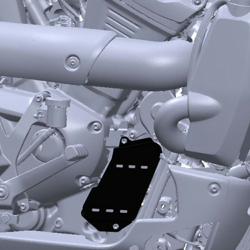 ハーレー スポーツスターS、ナイトスター RH975用 オイルクーラーカバーです。 このカバーはオイルクーラーサイドのシルバーを隠し、ブラックアウトします。 熱対策としてエアベントも設けています。 ステンレススチール製。 CNCマシンによる切削加工品です。 ブラックパウダーコート塗装済み。
