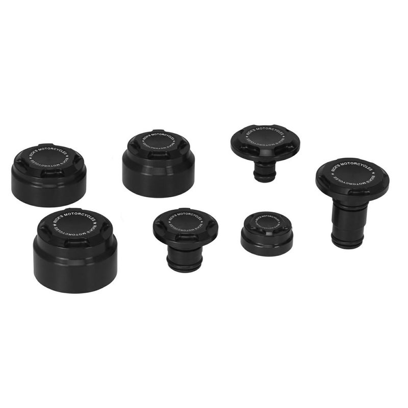 M8ソフテイル ブレイクアウト、ファットボーイ用 ピボットカバーセットです。 アルミニウム製。 CNCマシンによる削り出し加工品です。 ブラックカラーのベースに、レーザー刻印されたRick's Motorcyclesのロゴがアクセント。 各ピボットをカバーすることで、バイク全体が引き締まったカスタムルックになります。 セット内容: フロントアクスルカバー左右 リアクスルカバー左右 スウィングアームアクスルカバー左右 リアショックアブソーバーナットカバー 取付けに必要なハードウェアが付属します。