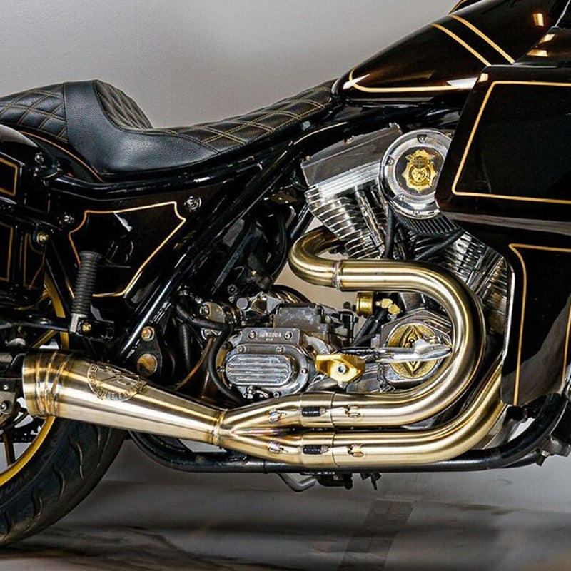 ダイナ用 2-1フルエキゾーストマフラーです。 Sawicki Speed(サヴィッキ・スピード)のハーレー用マフラーはSUS304ステンレスを使用しています(SUS304ステンレスは腐食に強く錆びにくいステンレスです)。 マフラーの内部では燃焼による水が発生する(燃焼でガソリンと同量の水が発生しさらに触媒で水が発生します)ので、耐食性は重要です。 <特長> ●ルイジアナ州ニューオリンズのカスタムビルダー Royal-T Racing(ロイヤルTレーシング)オリジナルの、通称「パイカット」ターンアウトデザイン。むき出しの溶接痕がパフォーマンスを連想させるデザインです ●マフラーエンド内側にはビレットアルミニウム製の脱着可能なキャップが装着されています ●馬力とトルクアップを両立 ●Sawicki Speed(サウィッキ)のロゴプレートが誇らしげに溶接されています ●パッセンジャーフットペグマウントも使用可 ●18mm/12mm O2センサー対応 ●取付けに必要なブラケット、ハードウェア、エキゾーストガスケットが付属します ※車両装着写真は他車種用のものです。(参考写真) ※溶接は一本ずつ手作業で行われており、ロゴプレートの位置や向きはばらつきがあります。あらかじめご了承下さい。