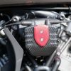 スポーツスターS、パンアメリカ用 ドライカーボン製イグニッションコイルカバーです。 <特長> ●最新のカーボン加工技術である、ドライカーボン製法による本格的カーボンパーツ。航空機部品にも使用される超軽量・超高強度を誇る素材です ●本物のカーボンパーツが持つ高級感溢れる質感。イグニッションコイルに被せることで抜群のドレスアップ効果を発揮します ●レーシーな綾織りカーボン柄。マット仕上げです ●紫外線に強いUVカット加工済み ●変色、腐食やキズに強いアルマイト仕上げアルミ製プレート付。高級感が更にアップします。プレートの色はゴールド、ブルー、レッドよりお選びいただけます ※写真は艶あり仕上げのものです。(参考写真)現物は光沢の無い仕様になります。