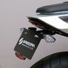 ハーレー X350のテール周りをすっきりとまとめるフェンダーレスキットです。 <特長> ●リアフェンダーを取り払うことで、テールカウルの真下にナンバーが設置出来、すっきりとしたスポーティーなルックスを強調出来ます ●ナンバー角度は車検新基準に適合しています ●リフレクターおよびEマーク取得のLEDライセンス灯付。ライセンス灯はカプラーオンで簡単に接続出来ます ●ノーマルウィンカー移設可能 ●ベース部分はアルミ二ウム製の削り出し品。腐食やキズに強いブラックカラーのアルマイト仕上げです ●取付け用ハードウェア付属 ※車両装着写真のナンバープレートホルダーは付属しません。