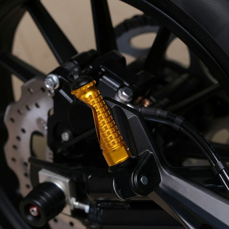 ハーレー X350用 アルミパッセンジャーステップです。 <特長> ●全面に格子状の溝が刻まれた、アグレッシブなデザイン ●A6061-T6高強度アルミニウム合金製。削り出し加工で製作された質感の高い仕上がりで、愛車をドレスアップします ●腐食やキズに強いアルマイト仕上げ。カラーはブルー、ゴールド、グリーン、レッド、チタン、オレンジからお選びいただけます ●先端の樹脂製キャップが立ちごけや転倒時に損傷を軽減します ●パッセンジャーポジション用 ●左右セット
