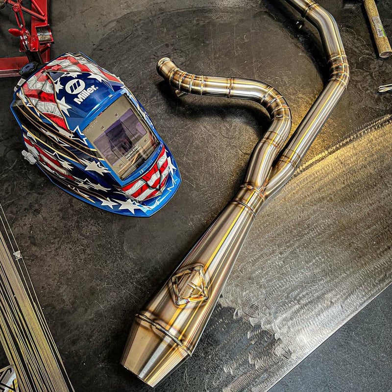 1999~2005 ダイナ用フルエキゾーストマフラーです。 <特長> ●4.5インチ(最大)径のリバースコーンマフラーボディが迫力あるルックスです ●ステンレスブラシ仕上げ。エキパイのアール部分も細かいパーツをTIG溶接で繋ぎあわせて製作しています。むき出しのTIG溶接痕がスペシャルな雰囲気を醸しだしています ●2.25インチ~2.5インチ径に径を増すバッフル内蔵。低~中回転域のトルクアップとパワーがアップします ●0.065インチ(約1.65mm)厚のステンレスパイプ製。1-3/4インチ~1-7/8インチ径へ径を増し、2インチ径の集合部分へ繋がることで、排気をスムースに流し、排気効率がアップします ●12mm/18mm O2センサー対応 ●取付けに必要なハードウェアが付属