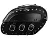 リアフェンダーストラットへボルト止めする、リジッドマウントサドルバッグです。 バッグ本体とリッドにスタッドのついたデスパレードスタイル。 頑丈なABS樹脂製の背面と補強フレームでバッグをしっかりと支えるため、荷物が重い場合も安心です。 リッドストラップはクイックリリースバックル付き。 左右1個ずつパドロックが付属しますので、バイクを離れる際も盗難リスクが軽減され安心です。 素材は高品質ビニールレザー。 本革のような趣がありますが、水に強く耐久性が高く、手入れも簡単です。 別売の車種別S4クイックリリースドッキングキット(3501-0342、3501-0343、3501-0344)を使用して装着することも出来ます。 ※装着車種により、リアターンシグナルの移設が必要になります。 ※ローダウン車両はマフラーとバッグが干渉する場合があります。 左右ペア