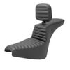 バックサポートが大きく切り立ったステップアップシートをベースに、パッセンジャーの座面を広くすることでタンデム乗車の快適性を高めているのが特徴です。 シートフォームはサドルマン独自のゲル一体成型のウルトラフォーム。 長時間乗車でも体重を適度に分散し続け、お尻が痛くなりません。 表皮はまるで本革のような風合いのサドルハイド・ビニールレザー。 バックレスト付なので、ロングツーリングでも快適です。 ストリートボブ(FXBB、FXBBS) スタンダード(FXST)