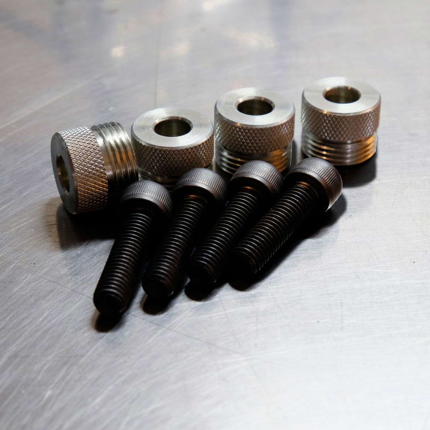 スポーツスターSに ジャッキアップアダプタープレート(TMO-T-002)を取り付けるためのスペーサーとボルトのセットです。 <特長> ●スペーサー、ボルト各4個のセットです ●スペーサーはスチール製。アルミに較べて耐久性に秀でています ●リプレース用または、ナイトスター、パンアメリカ用のプレート(TMO-T-002)をスポーツスターSへ転用する際に使用出来ます ※プレートは付属しません ※TMO-T-002に付属しています