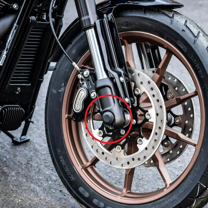FXLRS/T用のフロントホイール・アクスルカバーセットです。 殺風景なホイールアクスル周りをカバーするだけで簡単にドレスアップ出来ます。 アルミニウム製。CNCマシン削り出し加工品です。